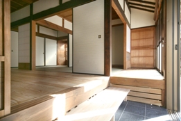 前の我が家が日に日に変わり、大きな梁や玄関の吹き抜けの感じに